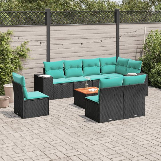vidaXL 9-delige Loungeset met kussens poly rattan zwart