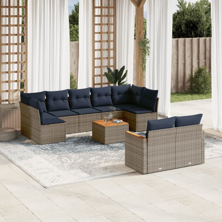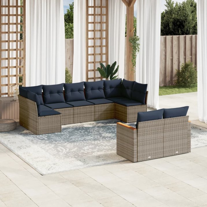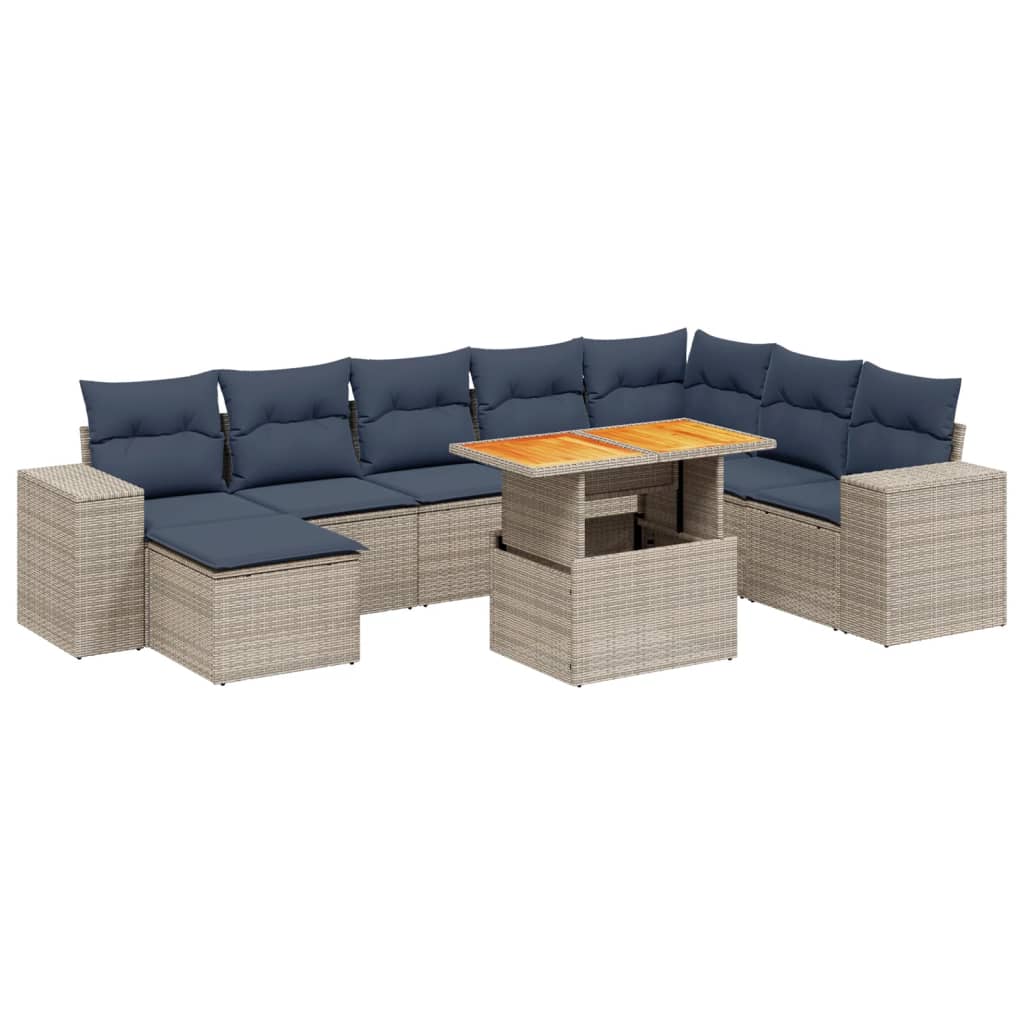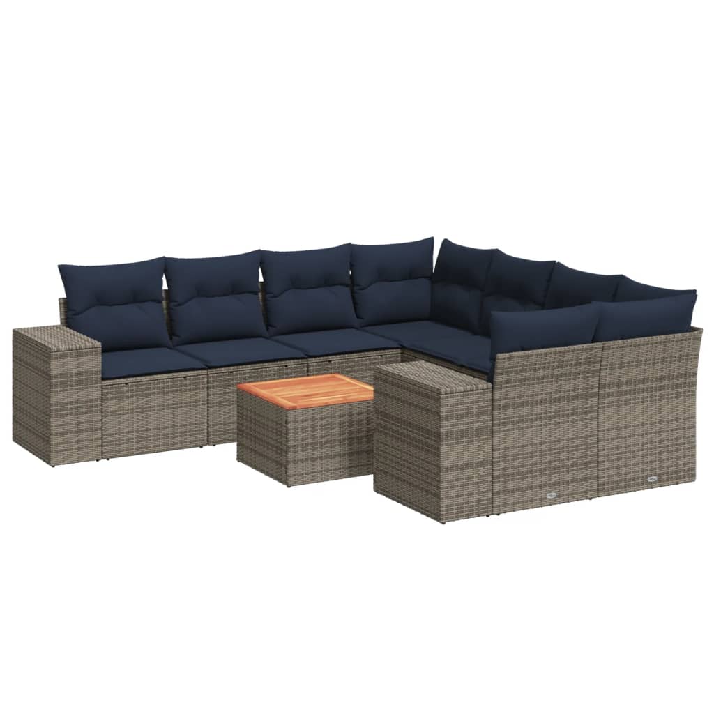 vidaXL 9-delige Tuinset met kussens poly rattan grijs