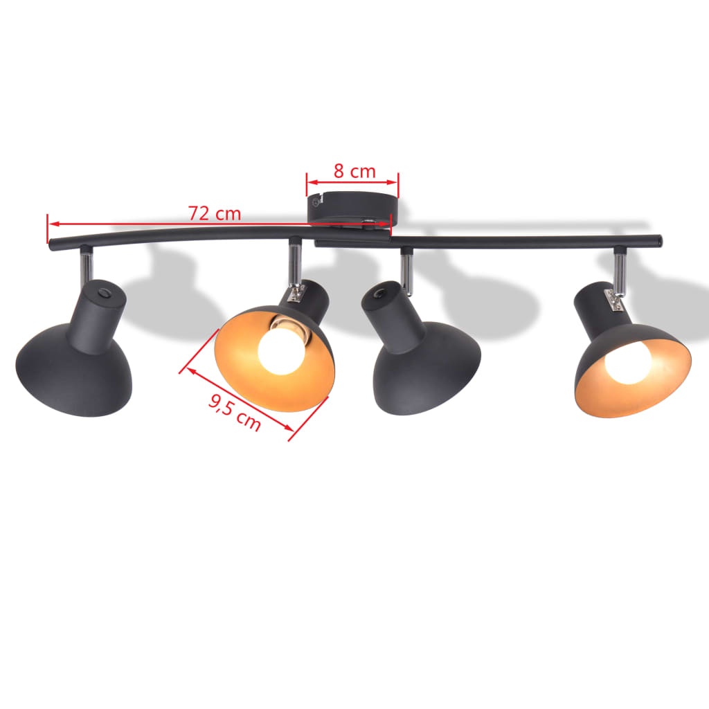vidaXL Plafondlamp voor 4 peertjes E27 zwart en goud