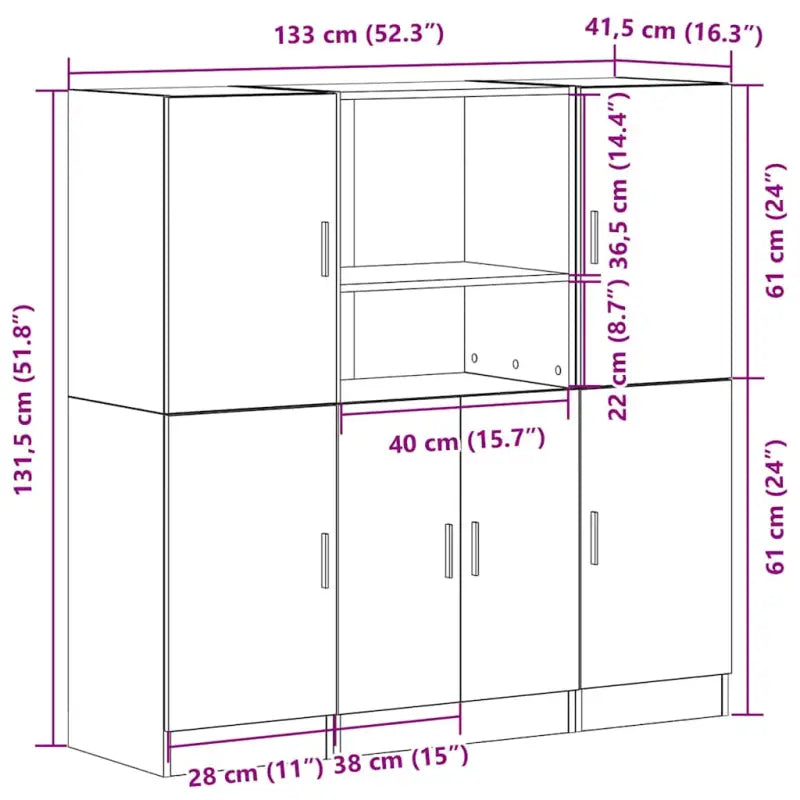 - Totale afmetingen: 133 x 41,5 x 131,5 cm (B x D x H)