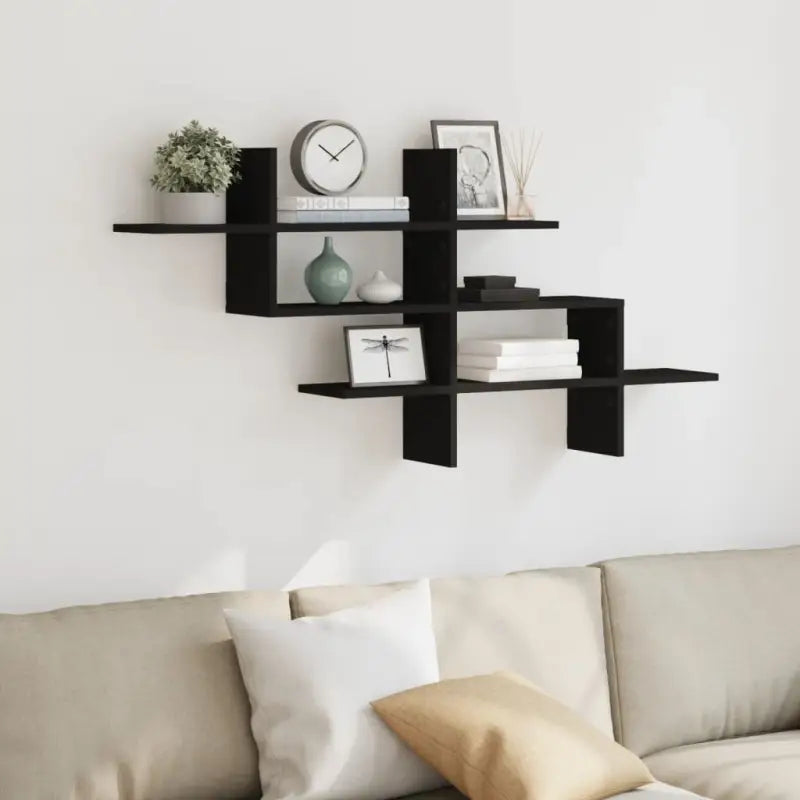 Zwevende schap van bewerkt hout voor een stijlvolle muuropslag