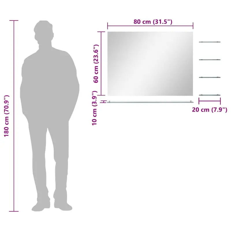 Dit badkamermeubel is gemaakt van hoogwaardig gehard glas waardoor hij duurzaam en gemakkelijk schoon te maken is. De rechthoekige spiegel met een minimalistisch en eigentijds ontwerp verbetert elke ruimte, terwijl de 4 kleine schappen en 1 groot schap praktische opslagruimte bieden. Je kan je spulletjes netjes opbergen en uitstallen.