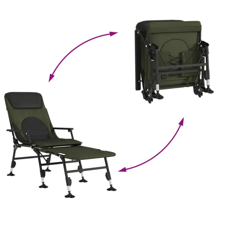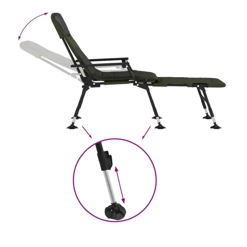 • Praktisch ontwerp: de verstelbare poten van het vislligbed zijn uitgerust met modderpoten, waardoor ook op oneffen terrein comfortabel gebruik mogelijk is en ze niet in zachte grond wegzakken. Bovendien kan het voorste gedeelte van het bed worden losgemaakt tot een aparte visstoel.