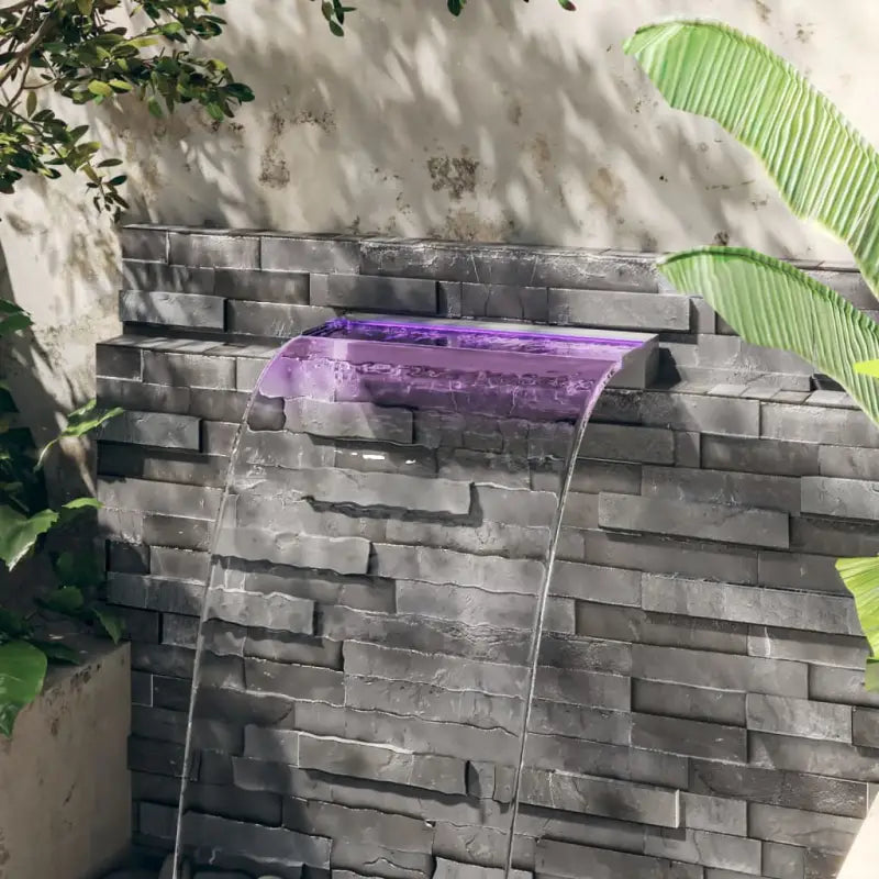 Deze watervaloverlaat met kleurrijke LED-verlichting is een decoratieve aanvulling op je vijver of zwembad. Geniet van het rustgevende geluid en uitzicht van het vallende water!