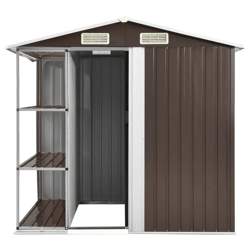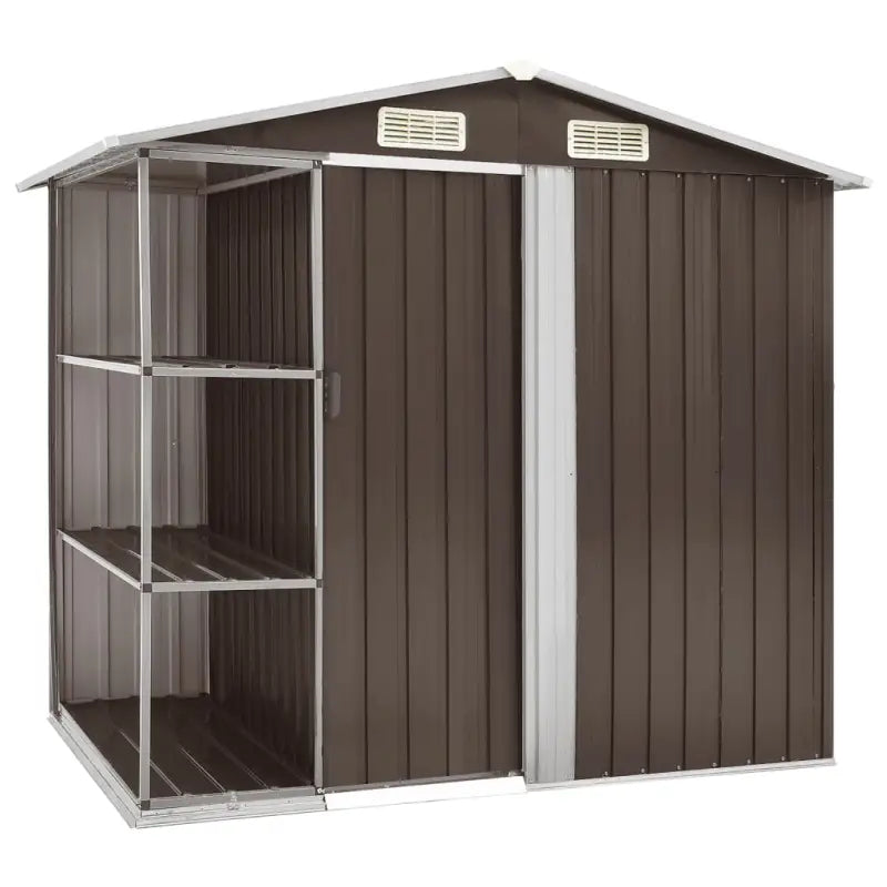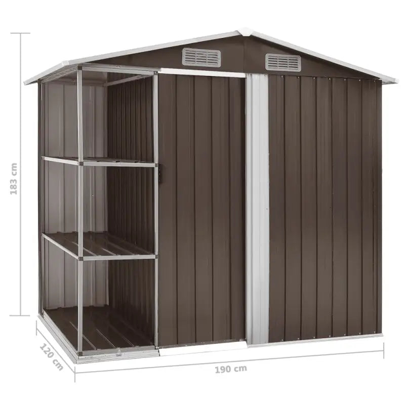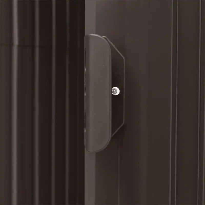Deze schuur is gemaakt van gegalvaniseerd ijzer en is stabiel en onderhoudsvriendelijk. Hij is aan zowel de voor- als achterkant voorzien van ventilatieopeningen, die voor een uitstekende ventilatie zorgen. De enkele schuifdeur met kunststof deurgreep aan de voorkant biedt gemakkelijke toegang.