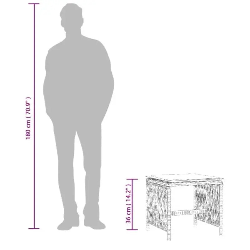 - Duurzaam materiaal: PE-rattan, ook wel poly rattan genoemd, is een sterke, onderhoudsarme kunststof die lijkt op natuurlijk rattan. Het is licht van gewicht en gemakkelijk schoon te maken en wordt vaak gebruikt voor tuinmeubelen vanwege de duurzaamheid en weerbestendige eigenschappen.