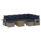 vidaXL 10-delige Loungeset met kussens poly rattan grijs
