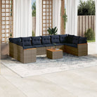 vidaXL 10-delige Loungeset met kussens poly rattan grijs