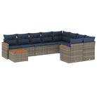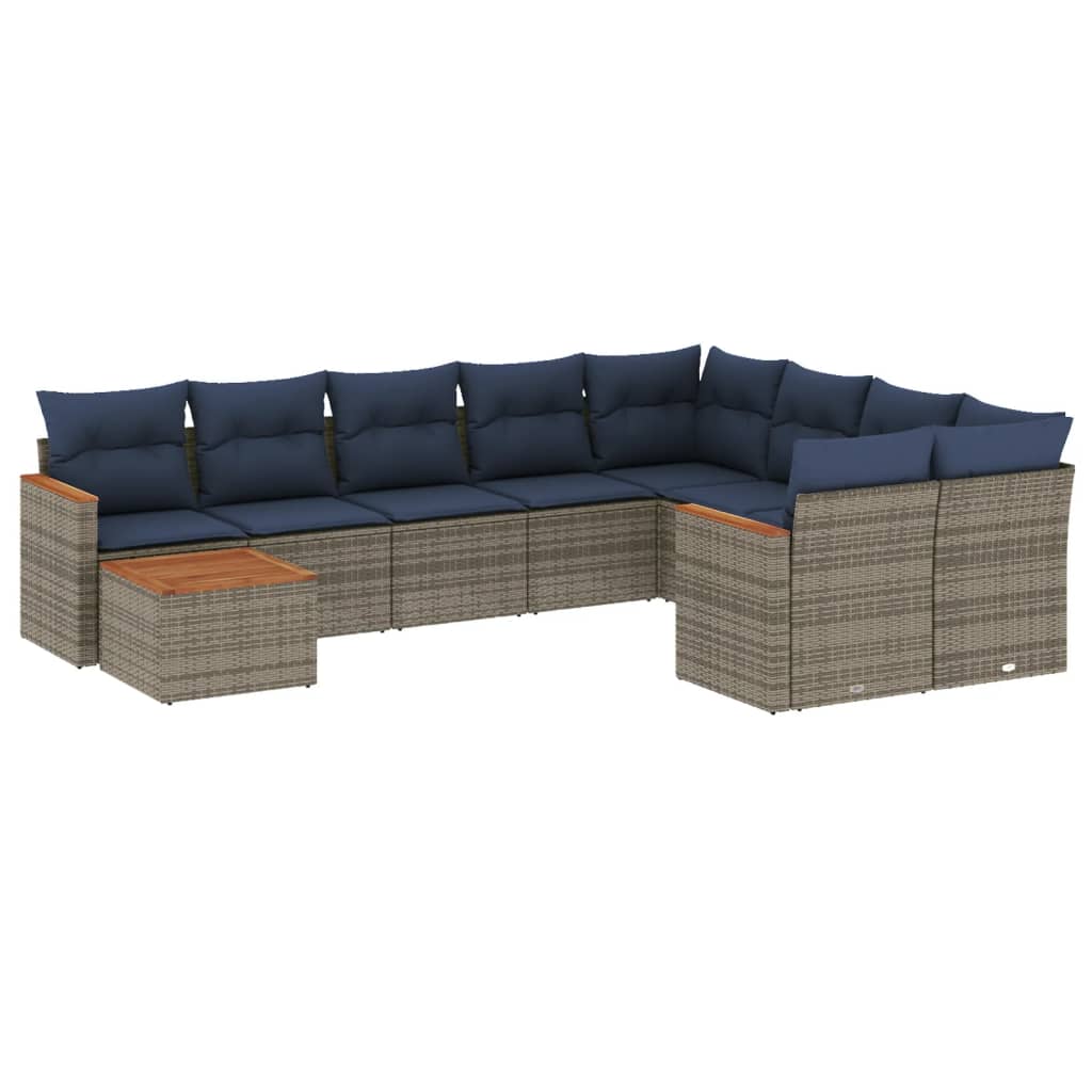 vidaXL 10-delige Loungeset met kussens poly rattan grijs
