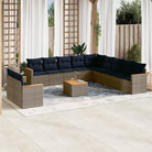 vidaXL 11-delige Loungeset met kussens poly rattan grijs