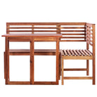 Deze houten tafel en bank ademen rustieke charme uit en zijn een geweldige aanvulling op je buitenruimte.