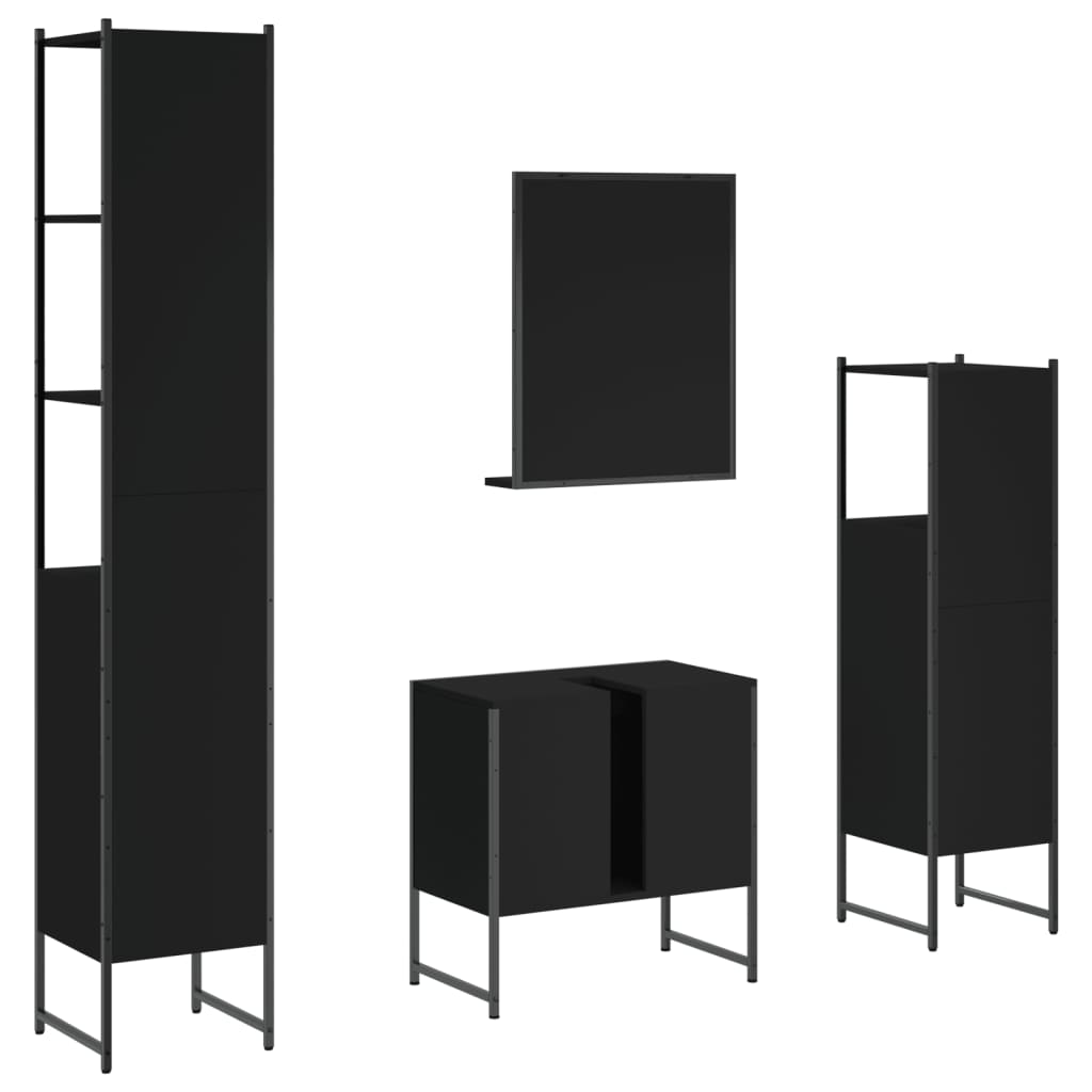 vidaXL 4-delige Badkamermeubelset bewerkt hout zwart