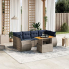 vidaXL 7-delige Loungeset met kussens poly rattan grijs