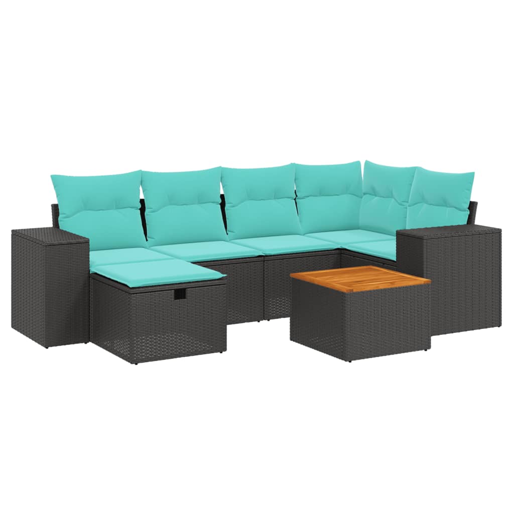 vidaXL 7-delige Loungeset met kussens poly rattan grijs