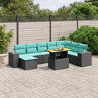 vidaXL 9-delige Loungeset met kussens poly rattan zwart