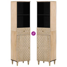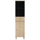 • Massief mangohout: massief mangohout is een sterk, tropisch hardhout waar stevige meubelen van gemaakt worden. De prachtige houtnerven maken elk meubelstuk net even anders dan de rest. De badkamerkast is gemaakt van massief mangohout en is duurzaam en stabiel.