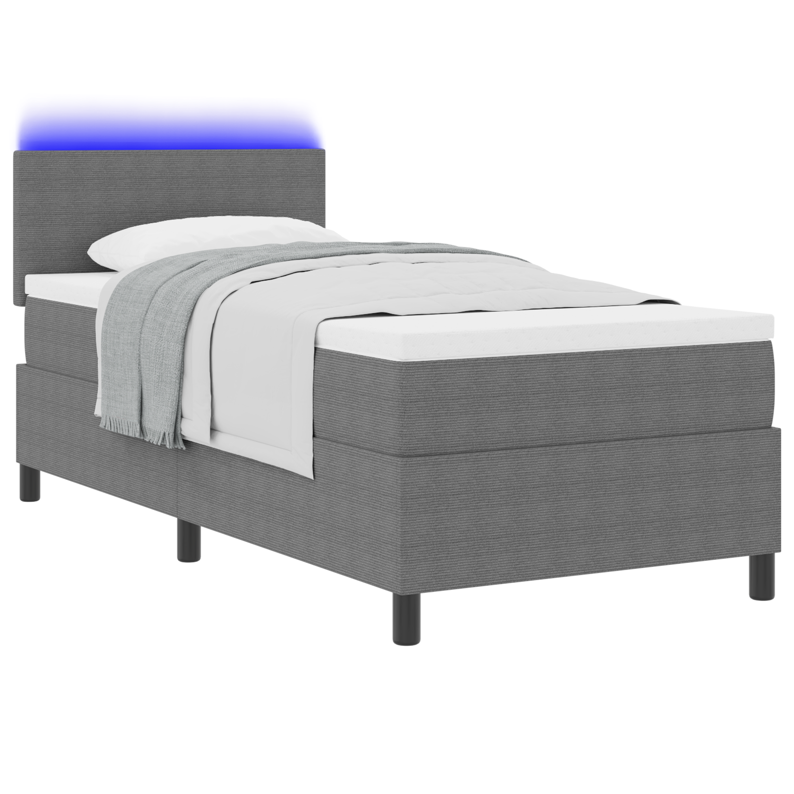 - Het komt met een LED-strip die een zachte gloed geeft, ideaal om te ontspannen of te lezen in bed.