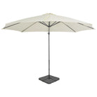 Deze parasol kan eenvoudig geopend en gesloten worden door aan de knop op de paal te draaien. De aluminium paal zorgt er samen met de 8 stevige aluminium baleinen voor dat de parasol erg duurzaam is. Het exclusieve ontwerp van deze parasol stelt je in staat om hem te kantelen en 360 graden te draaien om het zonlicht te blokkeren. Bovendien zorgt de grote, afneembare stalen kruisvoet voor extra stabiliteit zonder al te veel ruimte in beslag te nemen.