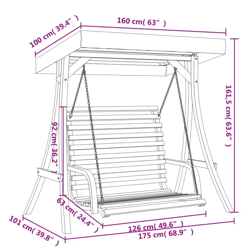 Houten schommelbank met luifel van massief vurenhout met teak afwerking