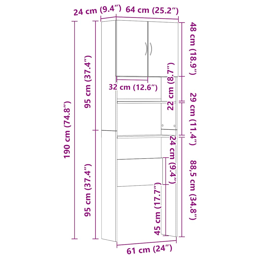 vidaXL Wasmachinekast 64x24x190 cm bewerkt hout en sonoma eikenkleurig